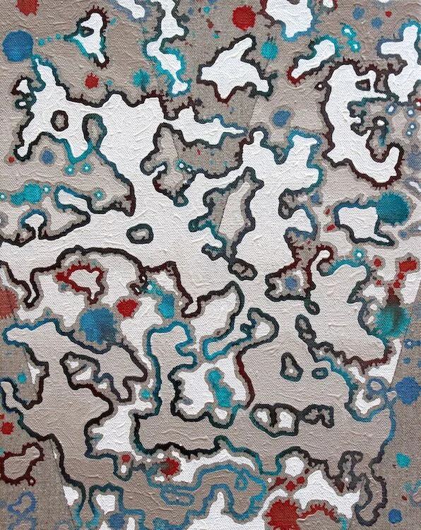 With Kuhn, surfaces and depths become a matrix. The disturbances that arise from his “painterly alchemy” represent molecular life here, recall cartography there, and elsewhere suggest organic shapes. What appears distant might in fact lie on the surface and vice versa.