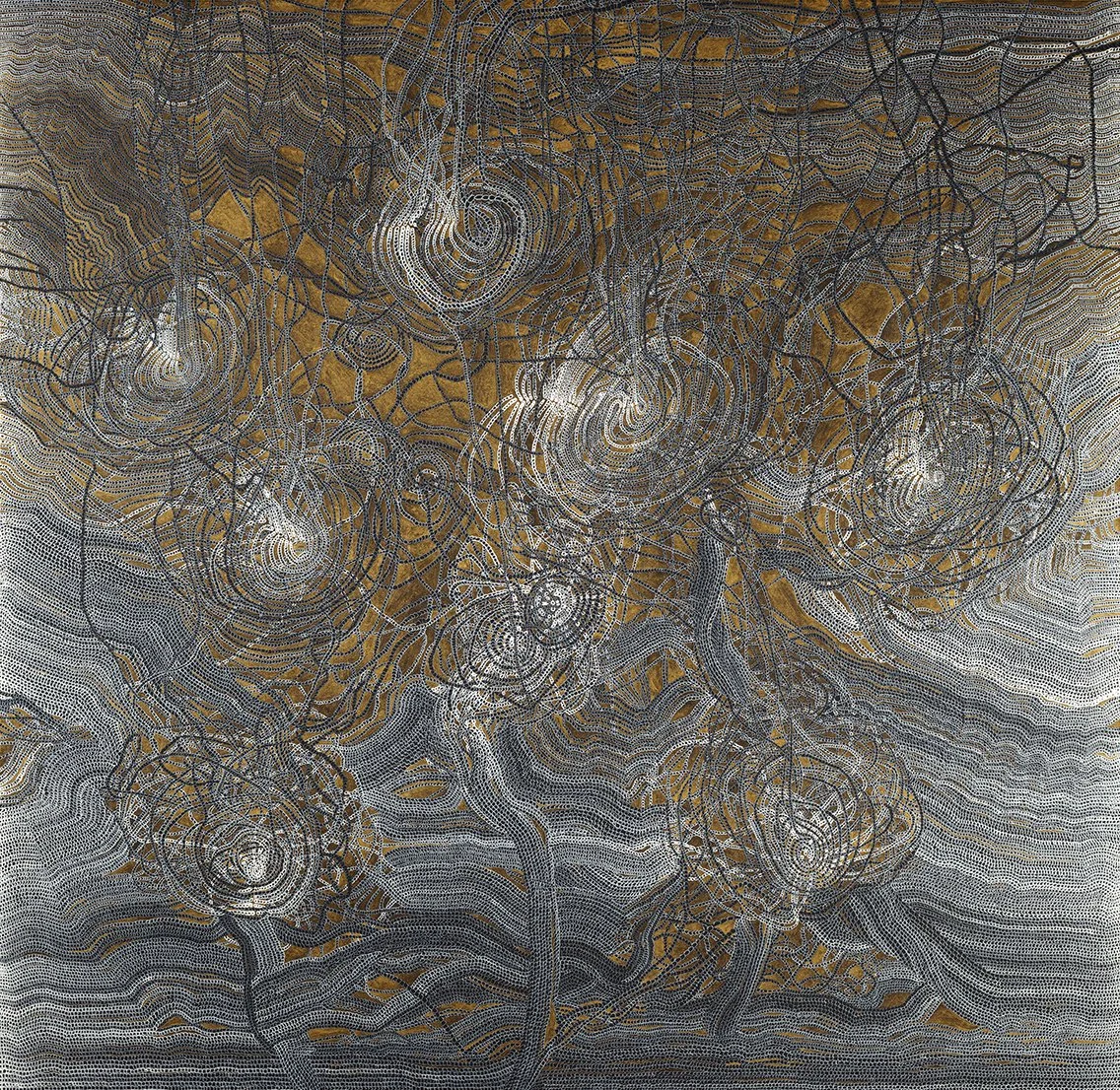 Hala Schoukair propose un langage organique et vivant, exploré de longue date par la tradition de l’art oriental. Une manière d’épuiser un sujet d’y revenir, de l’approfondir avec une répétition sans limites du même motif qui nous trouble sur la nature picturale ou organique de la surface
