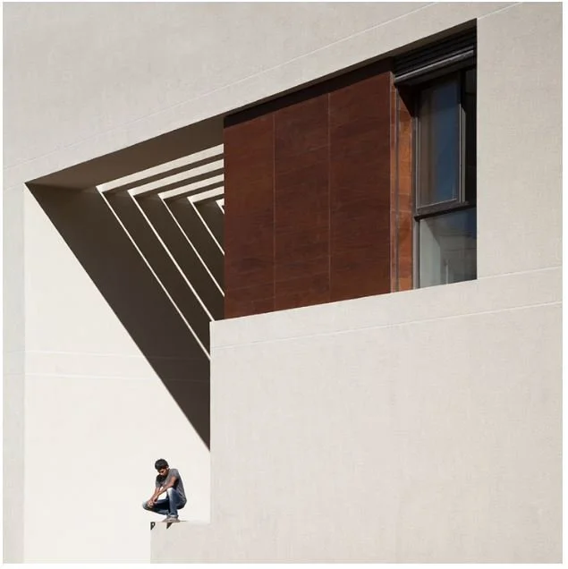 Geometric shapes, light and shadow fuel your images, often transforming urban landscapes into pattern like visuals, could you tell us about your creative process and how you regard your relationship with architecture?